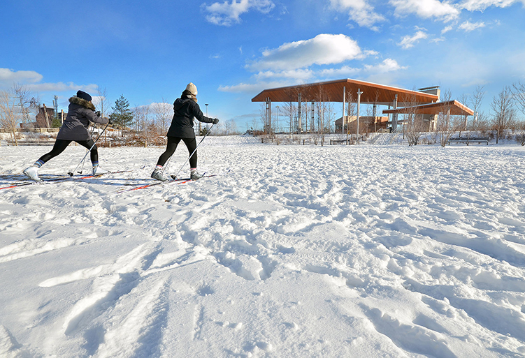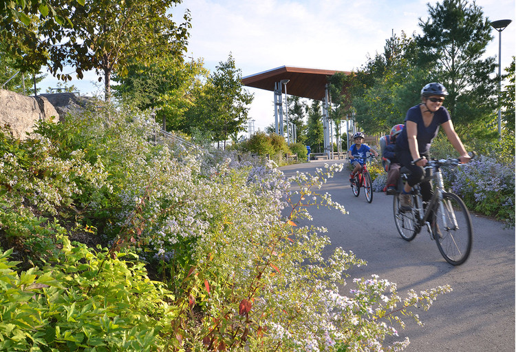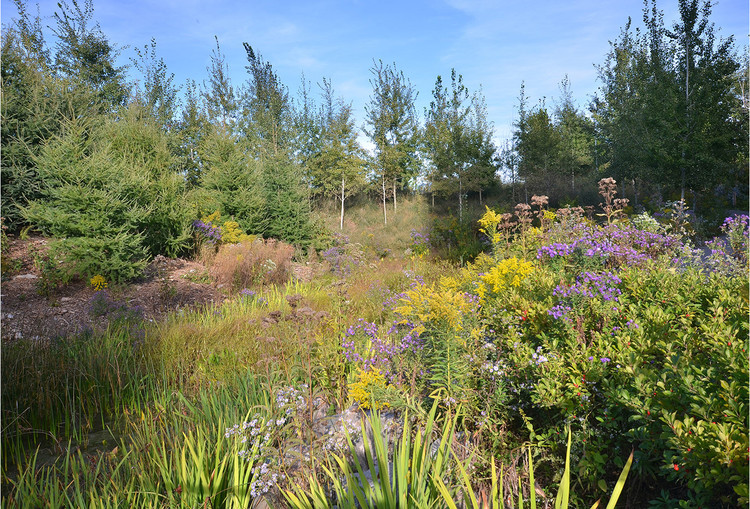 该公园的地形不仅仅建造出拦洪坝,也会建造出各种小气候植物区,全年吸引着人们和动物前来。没有了洪水危机,这些区域正在繁荣发展,构成多样化的生态系统。游客蜿蜒穿梭于环形路线的草地和沼泽中,这些路线横穿繁茂的植物林。在这里,候鸟城市能够从硬景中找到一个绿色空间安家。Corktown Common防洪公园的人造自然为更加复杂和紧密的植物环境的有机发展奠定了基础。多伦多公园园艺员工遵照混合管理方法工作,平衡该公园的有机维护,满足该景观特定空间和规划意图的林区。