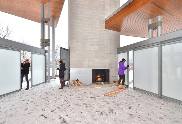 Corktown Common防洪公园主要被认为是一个减轻洪涝灾害的公共工程项目,但它依然有受公众瞩目的其他功能。这个公园位于一个人造的4 x 750米的东部防洪地形上以及倾斜的那一面,将这个重要的基础设施变成蓬勃发展社区中的聚集空间。这个细长的障碍物隔开2个生态、规划分离的公园部分:可浸和防洪。在东面,这个地形可以承受住500年一遇的洪水,而西面主要为社区居民提供安大略省本土野生景色。
