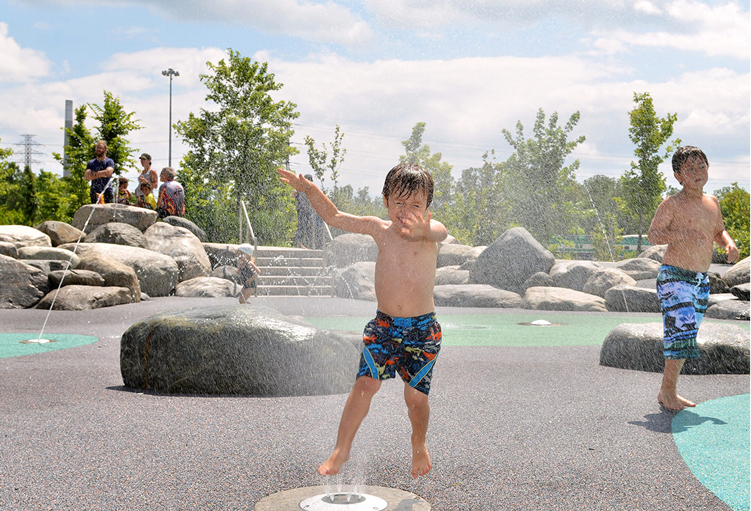 仔细校准的分级设计让用于塑胶水池(游客玩水的地方)的雨水和城市用水流入到沼泽中,进行生态治理,之后储存到水箱中,以供后来的灌溉使用。在夏季,将灰水引入沼泽中的举措会阻止富营养化和海藻的繁茂生长。在Corktown Common防洪公园中水既是朋友又是敌人——虽然一边在入口处就阻止了洪水,但在另一边水是受欢迎的,为之前缺乏生活的空间里提供繁荣的生态环境。