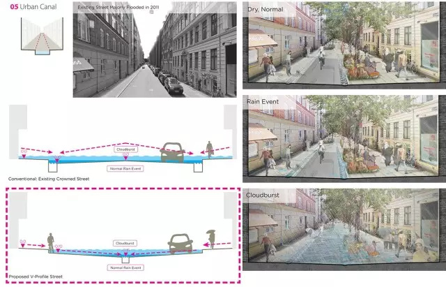 2011年的洪水灾难之后,哥本哈根具化计划用来应对气候变化。这些综合性、多学科的计划运用基于类型的暴雨工具搭建规划和特定区域方案之间的桥梁。