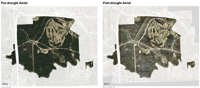 敏感性野生区的道路建设以及休闲规划使得休斯顿的纪念公园支离破碎,导致该区域生态退化以及空间质量下降。最近的飓风以及这几年的极端干旱使公园遭受重创,树冠损失严重。这个590公顷(1460英亩)公园角色的变化引起公愤,要求采取行动,进行规划改造。这个公园被构建成为休斯敦中部最有价值的生态资源,成为休息、娱乐以及学习的空间。