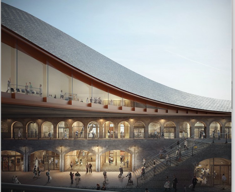 这座建筑最初是用来接收和储存来自英格兰北部的煤炭,是作为一个轻工业厂房和仓库来使用的。新的方案是一个连续的结构,将两栋建筑内部的山墙打通并与两座高架桥连接起来,同时打造了一个新的上层空间并与下面的空间保持了一致性。作为项目的中央核心,一楼的大型户外活动空间还可以举办各种活动。这个开发项目与很好的与国王十字区不断扩张的顶级住宅区和现代化的办公场所结合在了一起。