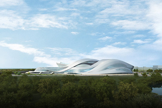 室外不光泽的半透明玻璃和氧化钛锌表皮有着共同的灰绿色调,给建筑一种变化的存在感,依靠灯光使整体的不透明变化成各种不同的半透明感。四个屋顶花园包括一个在二层的雕塑平台,有着特别订制的艺术家装置。这个LEED 金奖建筑用地热井加热和冷却,在冬季收获同样的能量,在夏季重新储存以冷却建筑物。