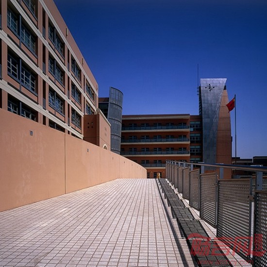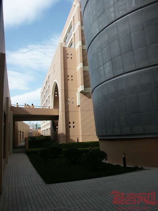 常规教室布置在教学楼的西南部,均为南向。教学楼北翼集中布置实验教室及各学科专用教室。在常规教室和专用教室之间为通高中庭和宽敞的走道。