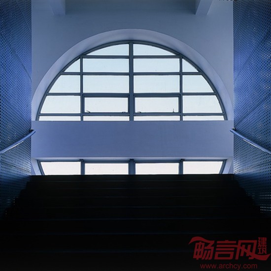 体育馆布置在教学楼南翼的东南部,在一层及二层挑廊处设有看台。