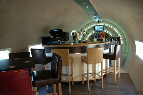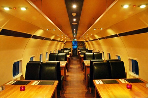 英国主厨托尼把一架退休的飞机改造成一家法式餐厅,在考文垂机场为乘客提供服务。这个飞机餐厅内置了40个座位,配备有一个全功能吧台,顾客在这里可以享受生啤酒、红酒和各色牛排。每样食物的价钱都不贵,从10磅到15英镑不等。用餐期间,顾客可以参观飞机驾驶员座舱,看看飞机飞行时机舱的状态。乘客可以像在真正飞行的飞机上一样通过呼叫按钮召唤服务员。