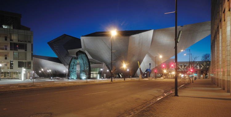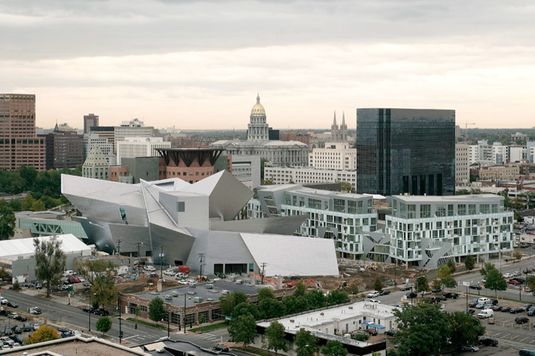 位于美国科罗拉多州的丹佛艺术博物馆是所非盈利性质的艺术机构,创建于19世纪90年代。该艺术博物馆最初名为“丹佛艺术家俱乐部”并于1949年开放画廊,通过保留和展示古典艺术和现当代艺术来鼓励和启示落基山区居民的艺术鉴赏能力。该博物馆于在20世纪50年代增加了儿童中心,并于1971年建成由意大利建筑师吉奥·庞蒂( Gio Pointi )和丹佛本地詹姆斯·萨德勒联合建筑公司(James Sudler Associates) 共同设计的“北楼”,“北楼”是座7层建筑总面积达到210,000平方英尺,并在建成后首度实现在该幢建筑容纳展示其当时所有藏品。该建筑也成为了这位重要的意大利现代设计大师在全美境内唯一完成的作品。2006年10月,丹佛艺术博物馆以弗雷德里克·C·汉密尔顿楼(Frederic C. Hamilton)的完成开放得以再度扩建,此次担当设计的是丹尼尔·里伯斯金:“峥嵘”的造型是以科罗拉多州绵延壮观的山脉和岩石,以及丹佛人乐观开放的个性为设计灵感,象征着落基山区岩石在大自然作用下呈现各种几何造型的不规则美感也折射出科罗拉州充沛的阳光。