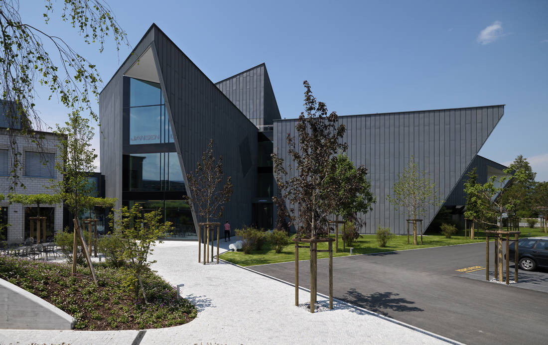 Jansen Campus钢铁塑料公司总部在天际线上勾勒出独特的线条,成为连接工业区和老镇的视觉焦点。项目位于瑞士oberriet,工业园区北端。建筑是由许多各个方向倾斜、大小不同的斜面组成,利用典型的视觉空间平衡。该项目始于三年前的概念设计,并已成为一个区域重要性的现实,代表真正的瑞士产品的质量、设计、工艺、建筑和经济。建筑符合严格Minergie标准:有效地使用能源,减少环境污染,提高建筑用户生活质量,维护成本等等。