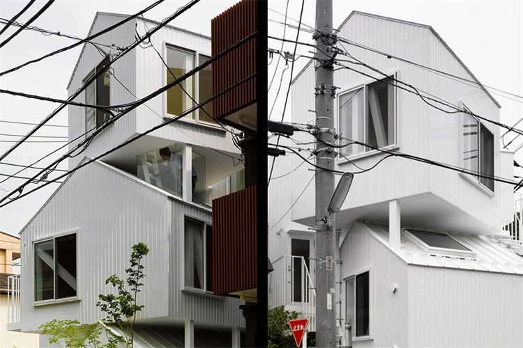 这个集合住宅作品位于东京市中心,其中包含五户业主的家,每户有两到三个房间,它们像积木一样堆积在一起,形成了这个房子奇特的外观。每户的房间并不相邻,而是在楼层上错开,用户外的楼梯联系起来。就如东京这个城市的微缩版,当住户沿着户外楼梯拾级而上,仿佛可以感受到房子就是城市,像是有一栋在山脚同时又在山顶的房子。“看不见的东京”因此被塑造出来,建筑师在一个杂乱纷纷的地方造出了一个无线丰富的空间想象。