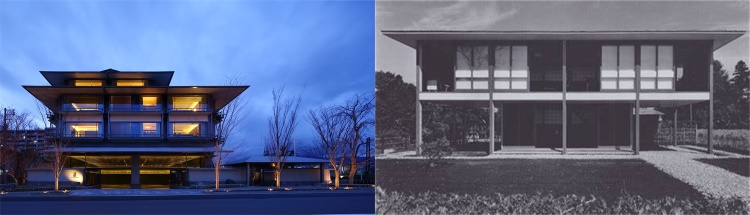 回溯五十年,京都丽思希尔顿设计与1954年建成的久我山之家在细部设计上颇为相似。该小型住宅是筱原一男的第一个作品,灵感来自桂离宫,颇具“日本特色”,他由对传统住宅的热衷而创造出一种有象征性的空间,在空间布局上,基本上坚持了“分割(divisional)”方法,筱原称其源自日本传统。