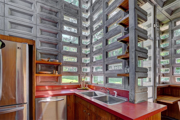 该房屋建于1957年,由新罕布什尔州曼彻斯特的Toufic医生和Mildred Kalil委托建造。Usonian自动设计可预测开放式现代房屋的许多方面。赖特利用狭小空间和宽阔空间的对比,以及光线和阴影来激活小型两居室结构。它由曼彻斯特制造的混凝土组件和从菲律宾进口的红木建造。
