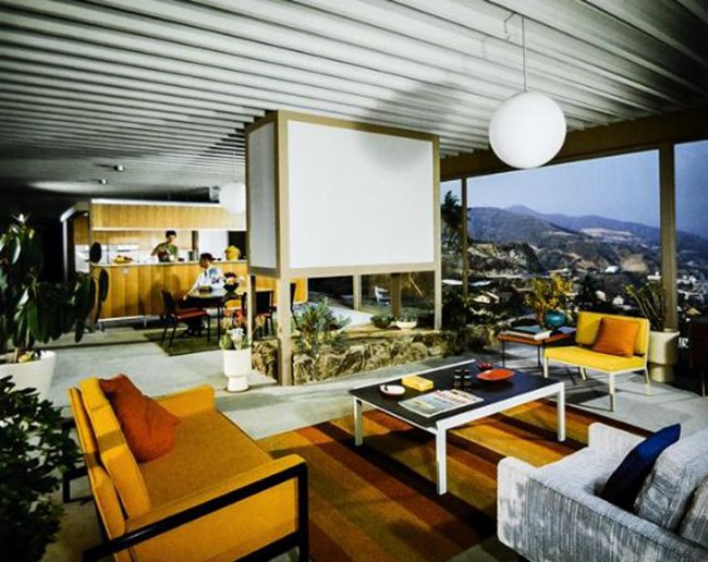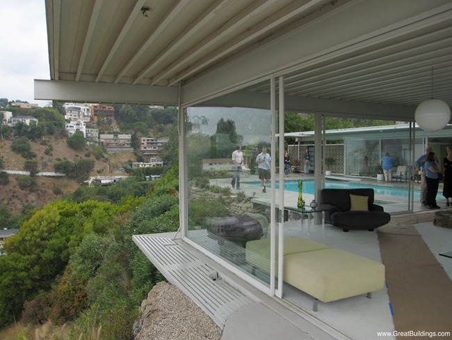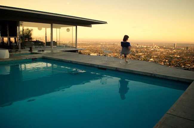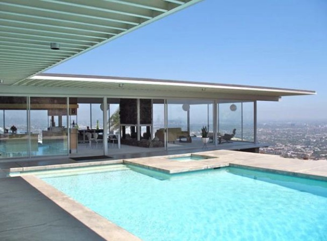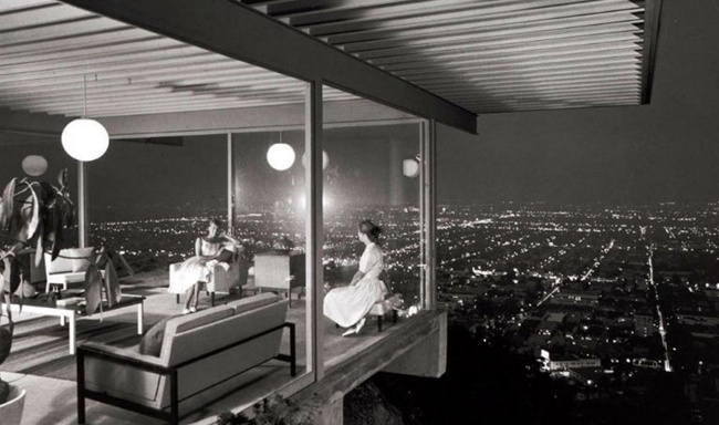 Stahl House,又名案例住宅22号(Case Study House #22)。建筑位于洛杉矶山上,俯瞰洛杉矶。1960年,Shulman拍摄了建筑师Pierre Koenig所设计的Stahl House的一系列照片,其中有一张夜景照,深刻的影响了加利福尼亚乃至整个美国的建筑史与意识形态史。在这张照片里,一幢水平伸展的玻璃钢板住宅凌空悬挑于悬崖之上,深深挑出的檐板之下的是整座城市的万家灯火。住宅的宽敞的起居室里坐着两位“主妇”。如果仔细审视我们会发现,这是一张两次曝光合成的照片。Shulman用一次长达7分钟的曝光捕捉了城市的整个夜景,再用一次闪光灯拍摄了两位女士交谈的画面。所以我们依稀能够在其中一位女士身上发现背后透出的灯光,然而这点瑕疵丝毫不影响这张里程碑式的照片的历史意义。它基本上勾画了我们对于“现代”的所有认知。而我们所不知道的是,当时该建筑还没有完工,基本上是一个“毛坯房”。所有的室内外陈设都是借来的,而那两位“主妇”闺友,一位是UCLA的在读大学生,一位是Pasadena高中的学生。在Shulman的镜头下,现代主义(Modernism)变成了现代风(Modernique,参考罗马风Romanesque的翻译方法)。而“Modernique“不仅是该住宅的广告词,还宣告了一种新的风格的诞生。来自欧洲的现代主义通过Shulman的重建,同南加州的地理景观与生活样式结合到了一起,建立起一种新的“现代”的时尚印象。