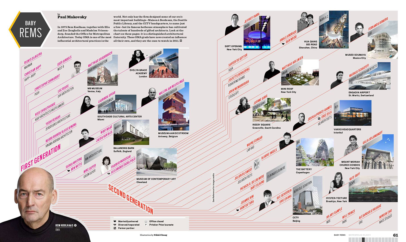 华尔街时报(WSJ)曾经列举了库哈斯的七个门徒,其中包括黎巴嫩出生的建筑师Amale Andraos,这位女建筑师曾就职于OMA,她与丈夫Dan Wood创办了Work Architecture公司;德国出生的奥雷舍人,设计了新加坡Beach路的DUO双子楼项目。Ramus表示,“作为一个团体,我们对接受WSJ采访有点犹豫。是不是永远都不能切断同库哈斯的关系?”