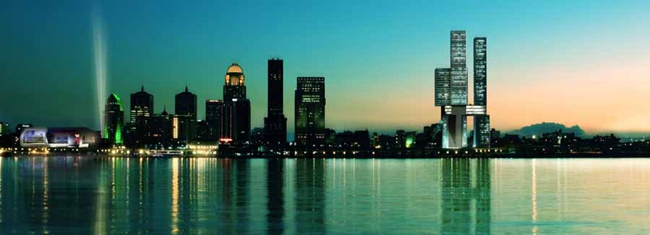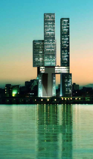 这座大厦原来设计为21层,现在改为61层,由四条独立的“腿”支撑,每一条“腿”有不同的功能,由一座多层的艺术中心连接起来。这座中心包括一座一英亩大小的花园,位于第22层上。