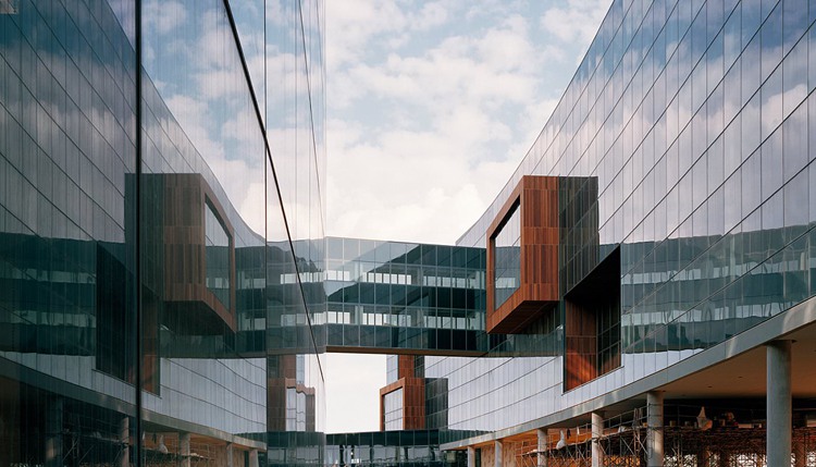 六千名正式员工共同享用着约140000平方米的园区,其功能还包括医疗设施、餐厅、图书馆、礼堂以及一个健身中心。为了消减一个大体量建筑对场地的影响,设计采用了废水回收系统、再生材料及其他节能减排的环保策略,这也为其赢得了LEED金级认证。