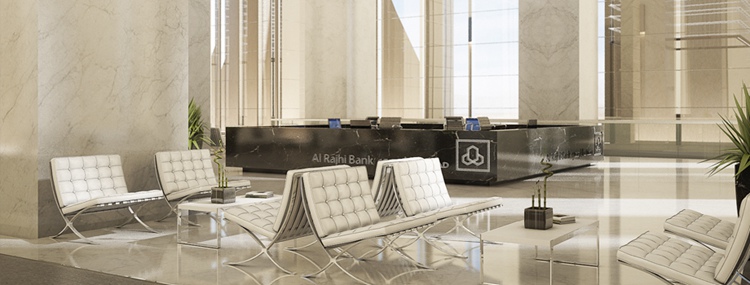 拉吉哈银行总部大楼坐落于沙特阿拉伯利雅得市的法赫德国王路,容纳了办公楼、祈祷室、600人大礼堂、银行大厅、员工食堂以及含有1100车位的地下停车场。这个130000平米的项目被组织在一个从水面升起的地标性超高层中,周边环绕着一系列景观和场馆。