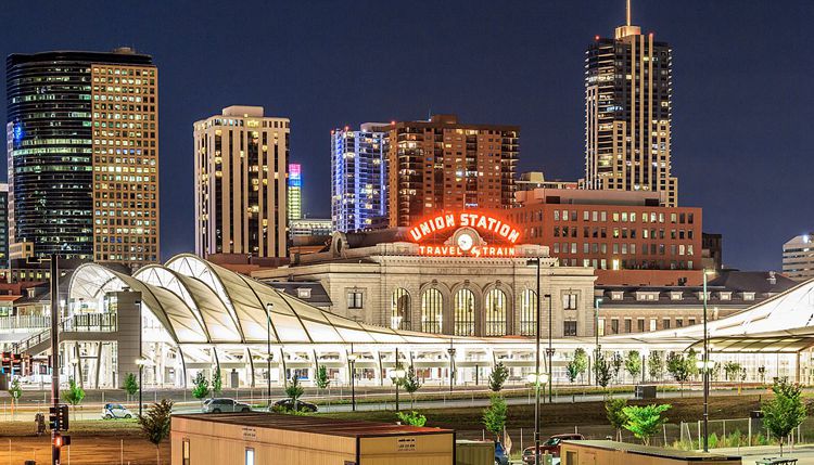丹佛联合车站历史悠久,地处该市中央商务区边缘地带,是学院派(Beaux Arts)风格的建筑杰作。SOM受委托对该车站进行扩建和改造,使其成为重要的地区性交通枢纽。为实现这一目的,SOM把8.09公顷(20英亩)的前铁路站场改建成城市交通区,将轻轨、通勤和城际列车、自行车和公交路线以及人行道编排纳入直观的联运枢纽之中。
