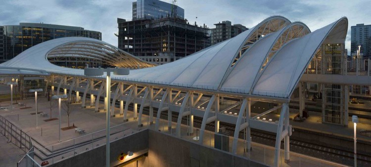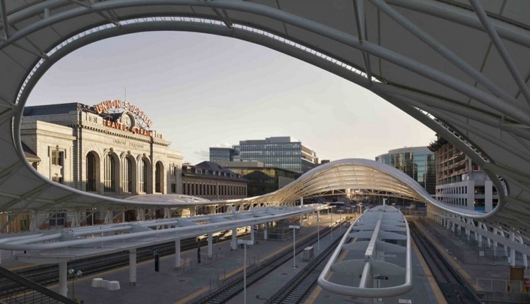 丹佛联合车站前铁路站场重建是美国同类型中规模最大的项目之一也作为案例研究展现了以公共交通为导向的城市设计之力量。这项巨额公共投资催生了一波史无前例的私营投资热潮。丹佛联合车站既尊重具有历史意义的地理位置,又以根本的前瞻性视角体现出高精技术和城市建设精神,为21世纪的联运枢纽树立起典范标准。
