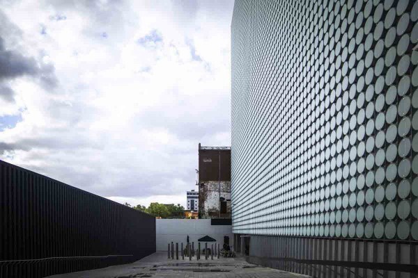 这个两层楼的建筑物有三个外牆包含有孔的金属板、玻璃及窗帘。它是个有许多可依循环境而随心所欲做局部改变的建筑物。