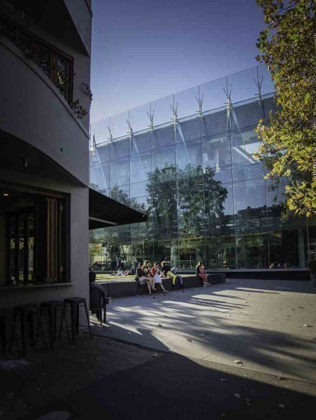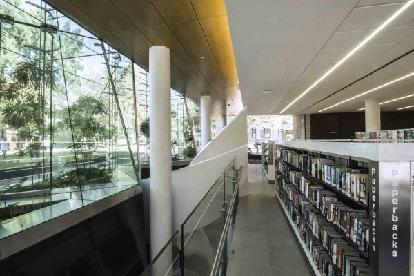 萨里山(Surrey Hills)的图书馆及社区活动中心面向着街道就像个打开着的珠宝盒;里面有小型图书馆、资讯中心、社区活动中心以及托儿所。这意味着降温是有多麽地重要,因为每天都会有很多访客。