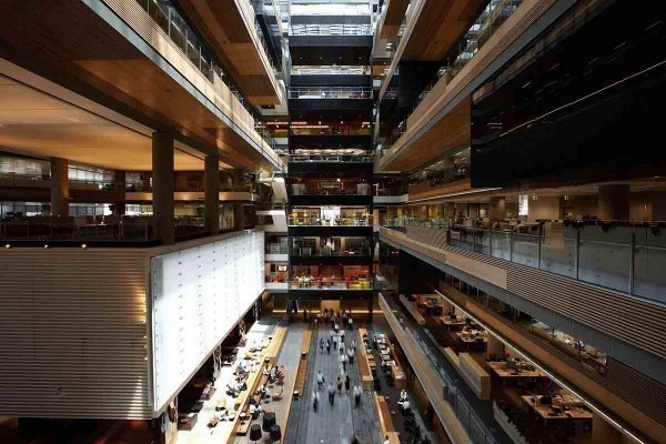 Anz中心是在墨尔本的一个银行总部,它是世界上最大的开放式办公大楼之一。有别于一般的室内设计,运用了大自然的色调加上三原色以及较大的型体,使其开销容易控管。