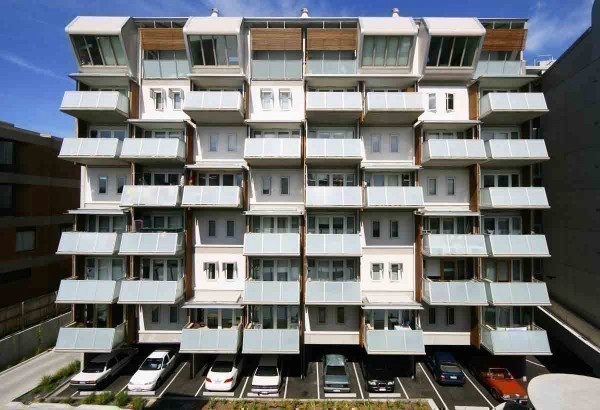 为了让光线可穿透至后栋,墨尔本的国民住宅区K2大厦的前栋是以交错内缩的方式建造而成。这也使得大厦与街道之间有着较为宽阔的距离,换句话说在公私领域间有个缓衝的空间。