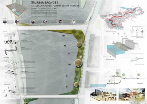 “城市海绵”竞赛方案由Gemawang Swaribathoro、Indra Nugraha及Morian Saspriatnadi提供,旨在在一套规划方案中,对布拉格这座瑰丽城市的内在力量进行整合和统一。布拉格拥有悠久城市历史和独特建筑文化,不会再是欧洲二线城市。随着布拉格成为欧洲大陆最为重要城市之一,方案提出了“海绵”概念——一种吸收生活品质、吸引人才、美化生活的联系工具。