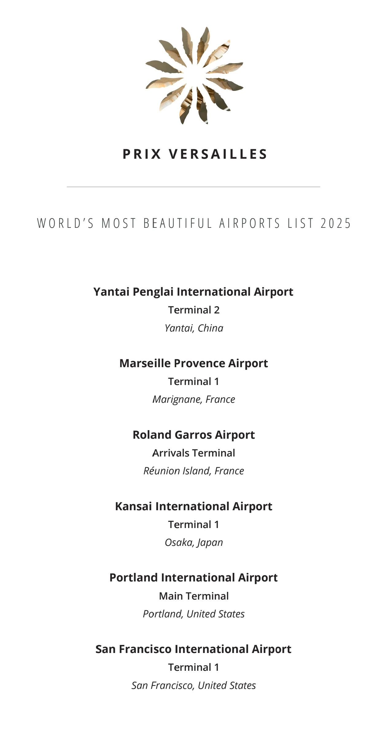 烟台蓬莱国际机场T2航站楼入选联合国教科文组织2025年度"世界最美机场"(凡尔赛国际大奖),在六大获奖项目中,是中国唯一获奖机场。