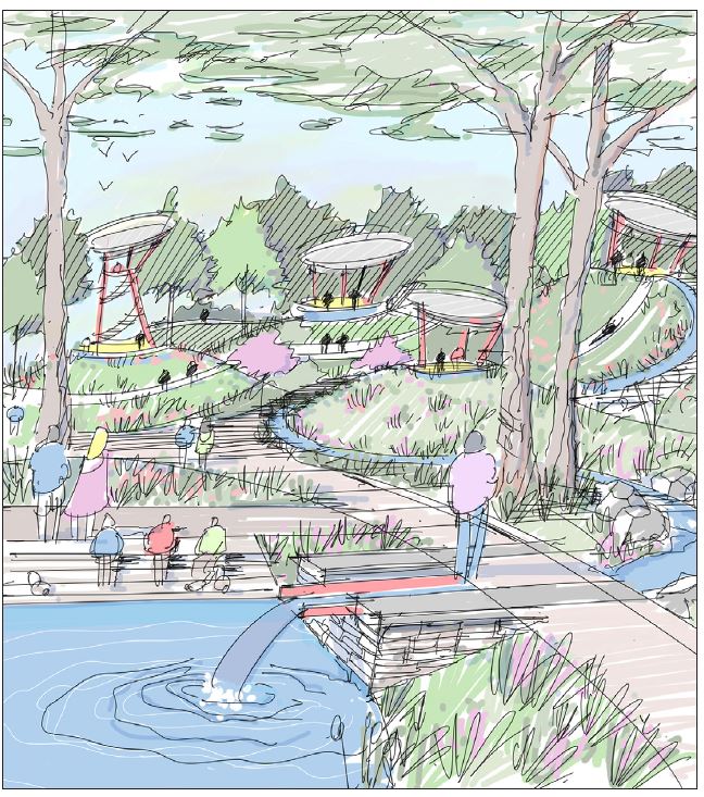 利用水,治理水,控制水,是景观设计师的任务。纽约长岛亨特角南海滨公园就是一例,为防止东河洪水泛滥和水位上升,利用其丰富的历史和壮观的景观来建立多层次的娱乐文化目的地和环境栖息地。