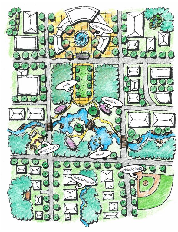 要了解Oakville,我们先从平面图(plan drawing)看起。什么是平面图?你就想象自己从飞机上向下俯瞰,城市和公园的样子。