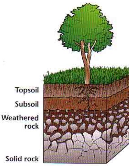 土壤的四个层次,砾砂层、粉质粘土层、回填土层、岩石层。