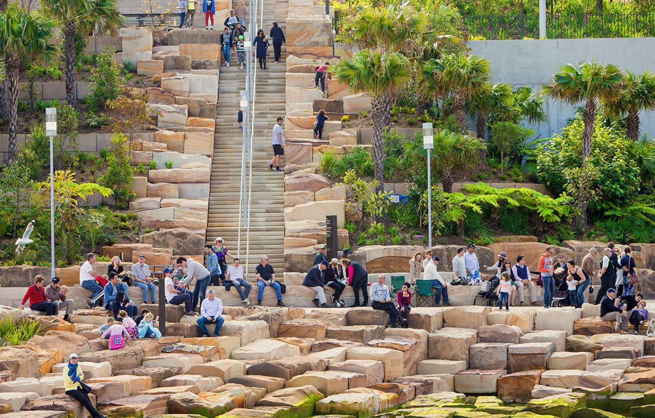 尊重城市历史,就地取材,也是景观设计的原则之一。悉尼布朗格鲁保护区景观设计项目中,广泛运用到的砂岩是根据对悉尼前史的参阅,石材在悉尼被广泛应用在修建中,称悉尼为“制作在石头上的城市”也不为过。