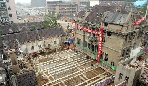 2005年9月29日,坐落在济南市纬六路85岁的老洋楼在机械牵引下,以每小时1米的速度缓慢平移。济南一家民营建筑企业出资400余万元,于9月28日至29日对该市一座巴洛克风格的楼房成功进行了平移保护。该建筑将在原有的位置上向西平移17米,为纬六路拓宽改造让路。该建筑有85年历史,重达五六百吨。据了解,这是山东省首次以民企出资方式进行的文物平移保护工程。