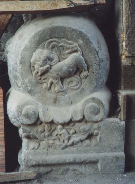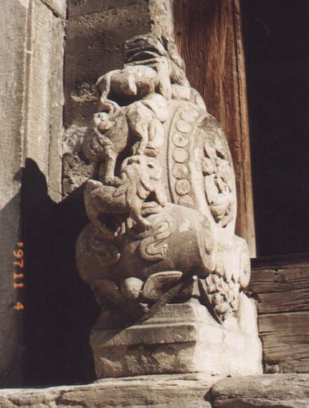 公元1100年以后,某个人把门枕石的外侧部分做的稍高一 些,又有人在它的各个面上都雕上了装饰性的线条。有的人为了使门墩更加引人注目,把它做得更高些。后来,又在线条中刻上了图案,图案不断丰富。再后来,门枕石部分和门枕石向上延伸的部分界线逐渐分明,上部成了箱形,下部成了放箱子的台子。