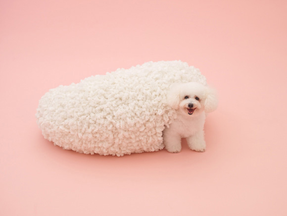 妹岛和世为比熊设计的狗屋,用了棉花糖似,毛茸茸的触感的材料,让你分不清那是比熊还是狗屋。