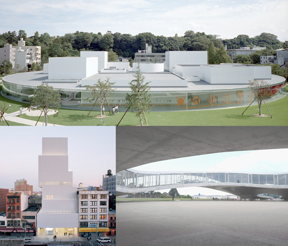 妹岛和世建筑作品:当代艺术在金泽21世纪美术馆(2004年)│当代艺术博物馆新馆(2007)│劳力士学习中心(2009年)