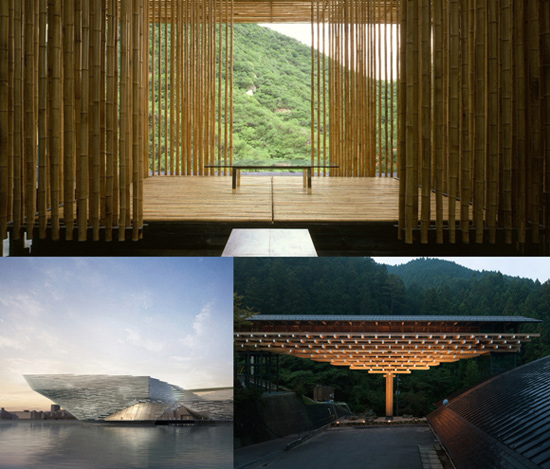 隈研吾建筑作品:Great (Bamboo) Wall(2002) │ V&A at Dundee( - ) │ Yusuhara Wooden Bridge Museum(2010)