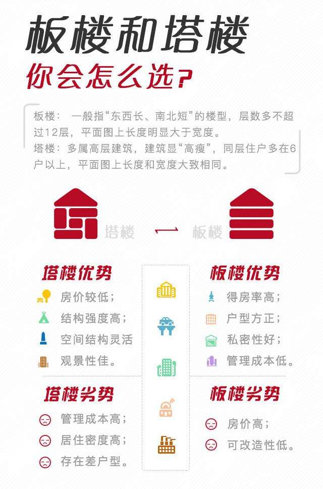 在谈户型前,先听听专业人士对于塔楼/板楼孰优孰劣的看法。大众普遍的观点是板楼优于塔楼。这在一般情况下是成立的。但是塔楼也有板楼不具备的优点,考量通风(至少两个方向)、阳光、楼层和户型,选择自己能接受的,塔楼住房不失为一种经济选择。
