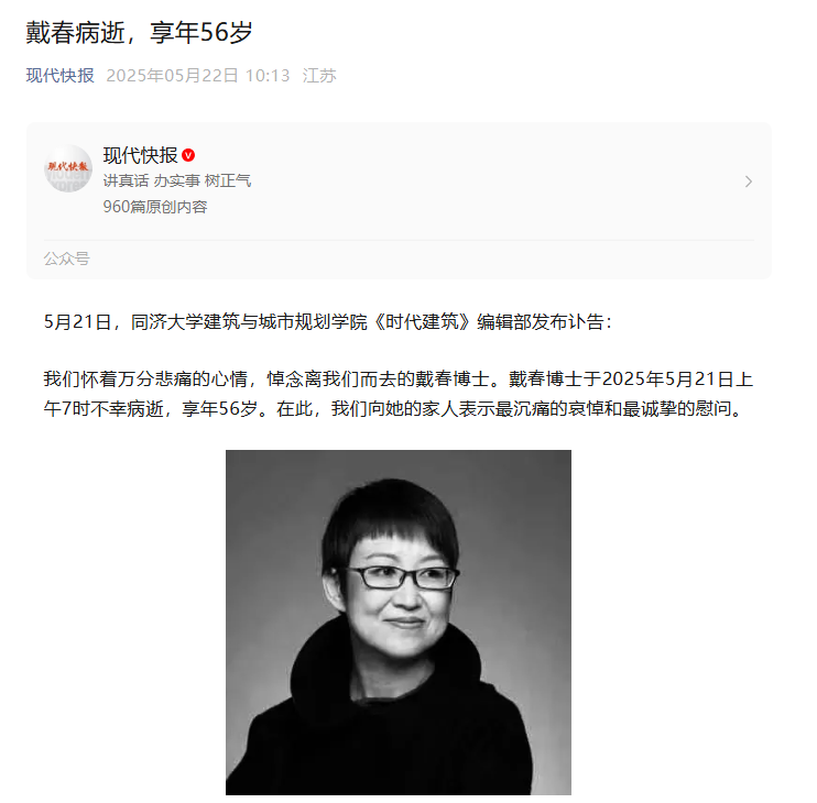 2025年5月21日因病逝世于上海,终年56岁。