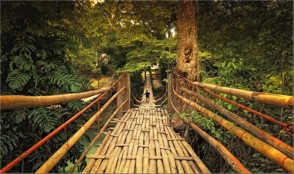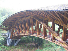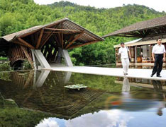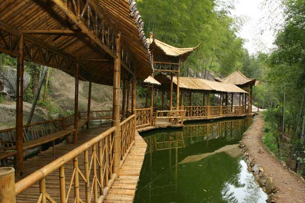 竹纹理较之木材更加细腻流畅、防潮防湿防蛀以及韧性强、有弹性等,光滑坚硬的质地为人们提供了结实耐用的理想建筑材料。
