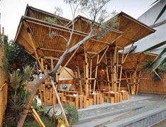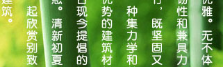 赏心悦目的外观给人以回归自然的美感。竹子在天然中带有一股诗画意境,竹装饰营造的空间有一种古朴风雅的韵味,天然竹材是一种高档的室内外建筑材料,外观自然清新,纹理清晰美观,色调素雅高洁在现代喧闹繁华的都市中容易给人清凉、宁静、温馨的感觉。
