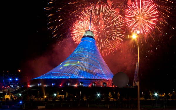 白色钢塔上的金球,标志着神鸟Samruk每年在生命之树上下一颗蛋,这座巴伊杰列克观景塔是由纳扎尔巴耶夫总统亲自设计的。当纳扎尔巴耶夫委托福斯特设计和平调解宫时,他想要一个金字塔形的,这也许是第一次,也是唯一的一次,诺曼·福斯特勋爵的设计由客户指定形状。