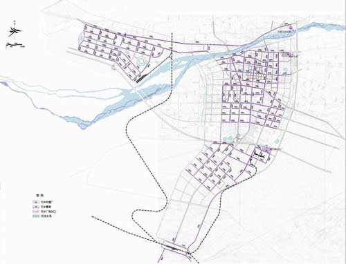 酒泉市污水工程规划图(图片来源:上海同济城市规划设计研究院)