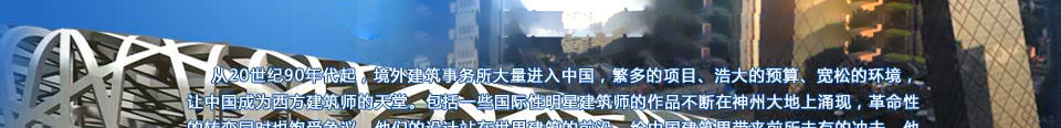 经济的发展,直接促成的便是城市的兴起,也就意味着建筑的大量兴建。在中国,几乎每一个城市都是一个大工地,有统计说,当今中国占有世界上40%的建筑量。在这样的背景下,众多西方建筑师开始来到中国,与之一起到来的,是一个疑问:中国是否已成为外国设计师的实验场? |