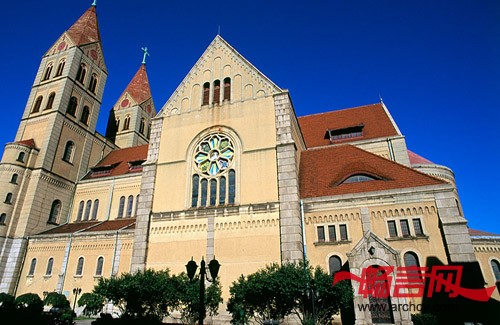 圣弥爱尔大教堂为青岛第一座天主教堂,始建于1932年,1934年竣工。由德国设计师毕娄哈依据哥特式与罗马式建筑风格设计,属新浪漫派。