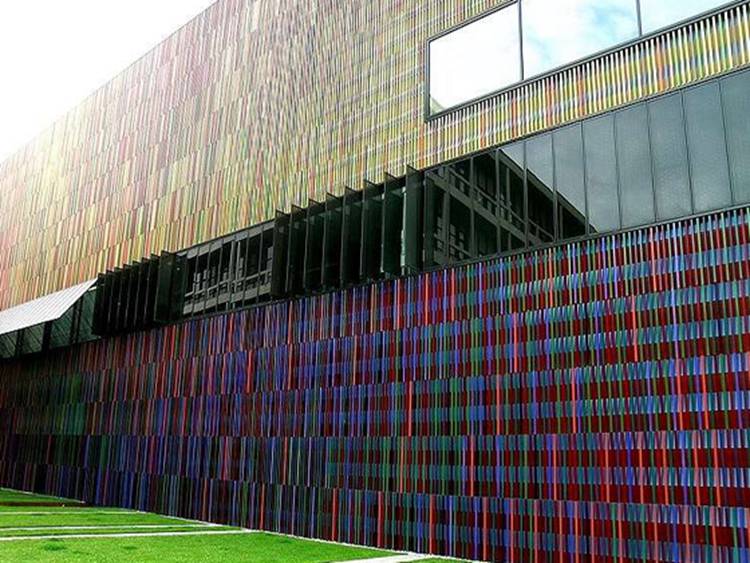 博物馆的设计别具一格。由23种不同色调的36,000根陶棍组成的外立面是整个建筑最为靓丽之处,它源自于绍尔布鲁赫胡顿建筑事务所的倾心设计,以及亨特旗下德国NBK建筑陶板公司的高超工艺。建筑师将成排的陶棍置于彩色穿孔铝质墙板前方,为建筑的外表披上一层若隐若现的温柔面纱。光线投射其上,交织的光影随着时间不断变幻,为建筑更添活力和动感。