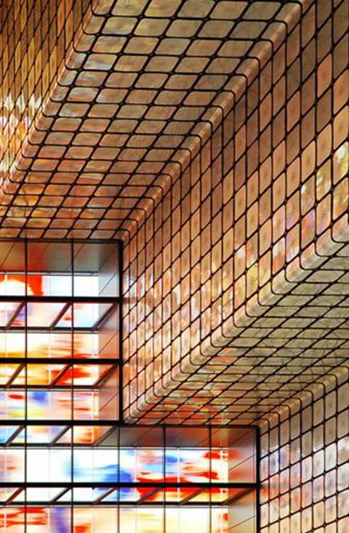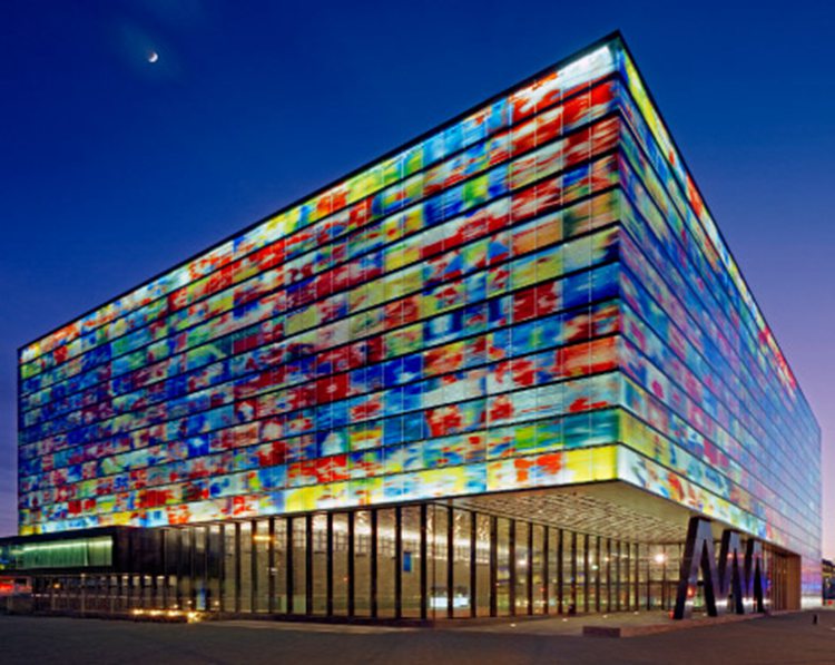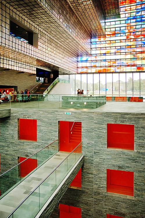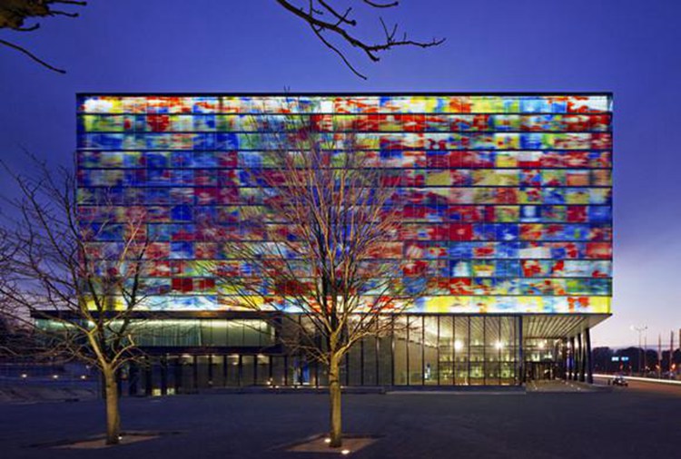 荷兰声像研究所的这座新建筑包括地下五层和地上五层。地下,荷兰无线电广播和电视录像的国家资料被堆放在一个深峡谷周边。地上,媒体博物馆建在一个阶层建筑空间里。第三个元素是该研究所的办公楼。这三个建筑空间围绕着一个大型开放的中庭建造。该建筑的立面是一个多彩的浮雕玻璃屏幕,描述荷兰电视著名的画面,是平面设计师雅普?德鲁普斯汀的一个作品。