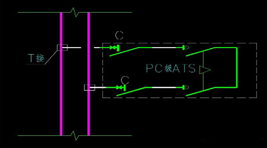 如图一,在A处采用了断路器,那么B处可以采用隔离器或者隔离开关。对于图二中此类干线式的配电方式,对C处的开关建议还是要采用断路器,防止ATS后的短路电流引起总开关的动作。对于是放射式供电的双电源切换切断还是建议采用隔离开关。从而减少了在断路器和电缆方面的投资。