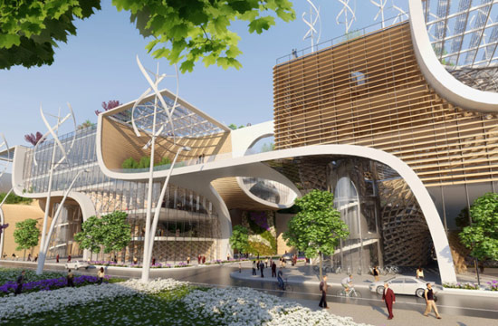 文森特·卡勒博(Vincent Callebaut)建筑事务所在庐山设计了“木兰花”商业综合体,作为上位总体规划的一部分,用来应对中国潜在的移民趋势。由于乡镇人口大量向城市涌入,造成城市资源严重紧张,导致如人口拥挤、环境污染和生活质量低下等等问题。