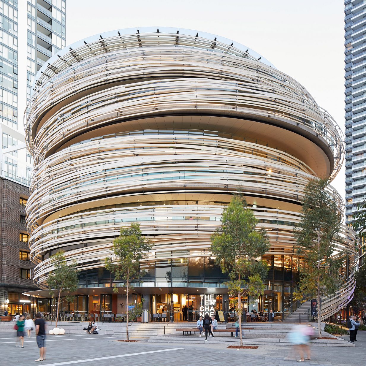 整个建筑的外立面是木质幕墙,打造出充满活力和吸引力的魅力外观。 隈研吾接受采访时说:“ 我们的目标是实现一座尽可能 对社区开放和实用的建筑 ,这一点体现在打造建筑的 环形几何体 上,使人们可以从多个方向上进入并认识建筑。 木质幕墙以动态和激动人心的方式覆盖在建筑物外立面上,参考了达令港的原始意义——商业活动场所和市场交换的焦点。”
